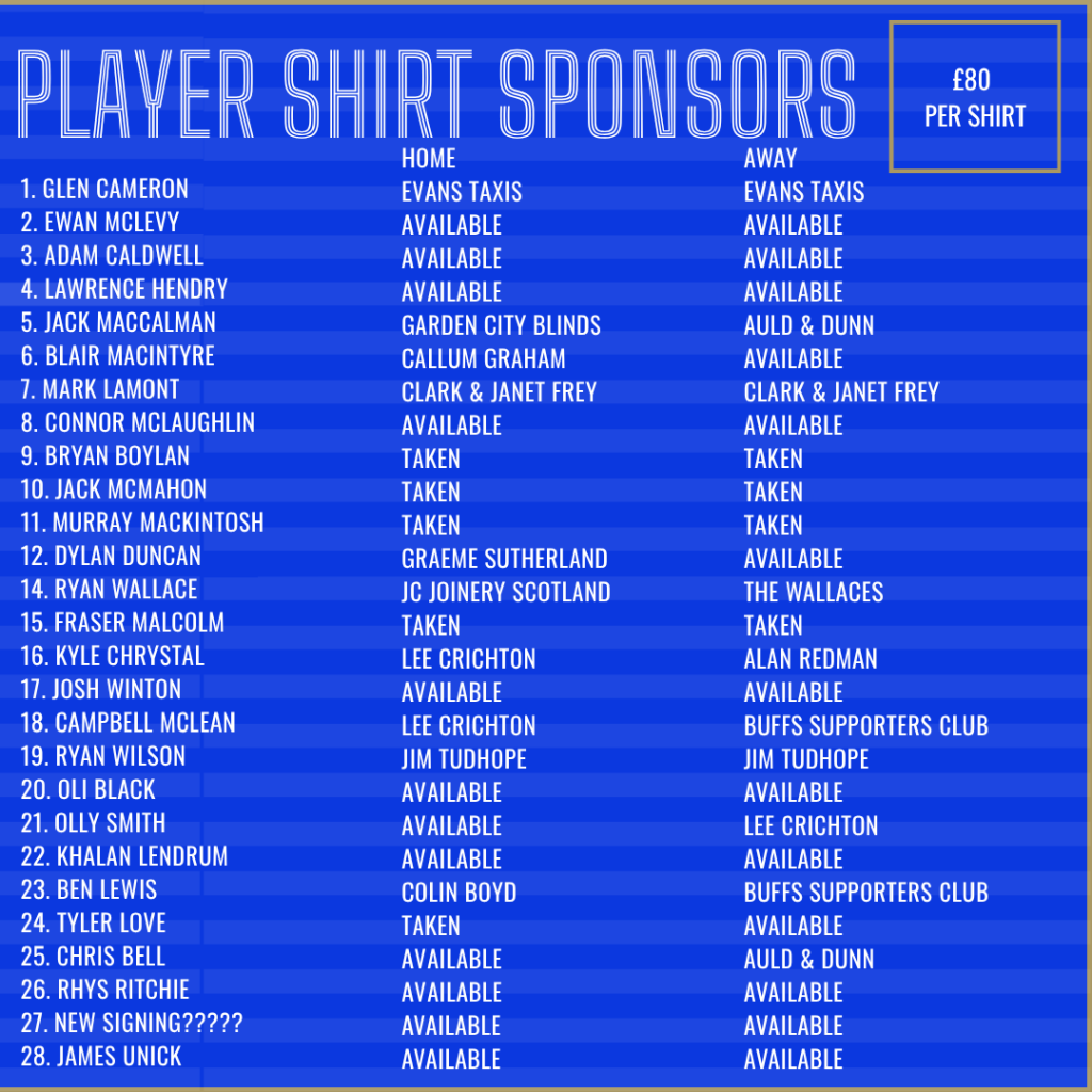 Check out the full list of available players for sponsorship below. Thank you to everyone who continues to support the club in this vital way.